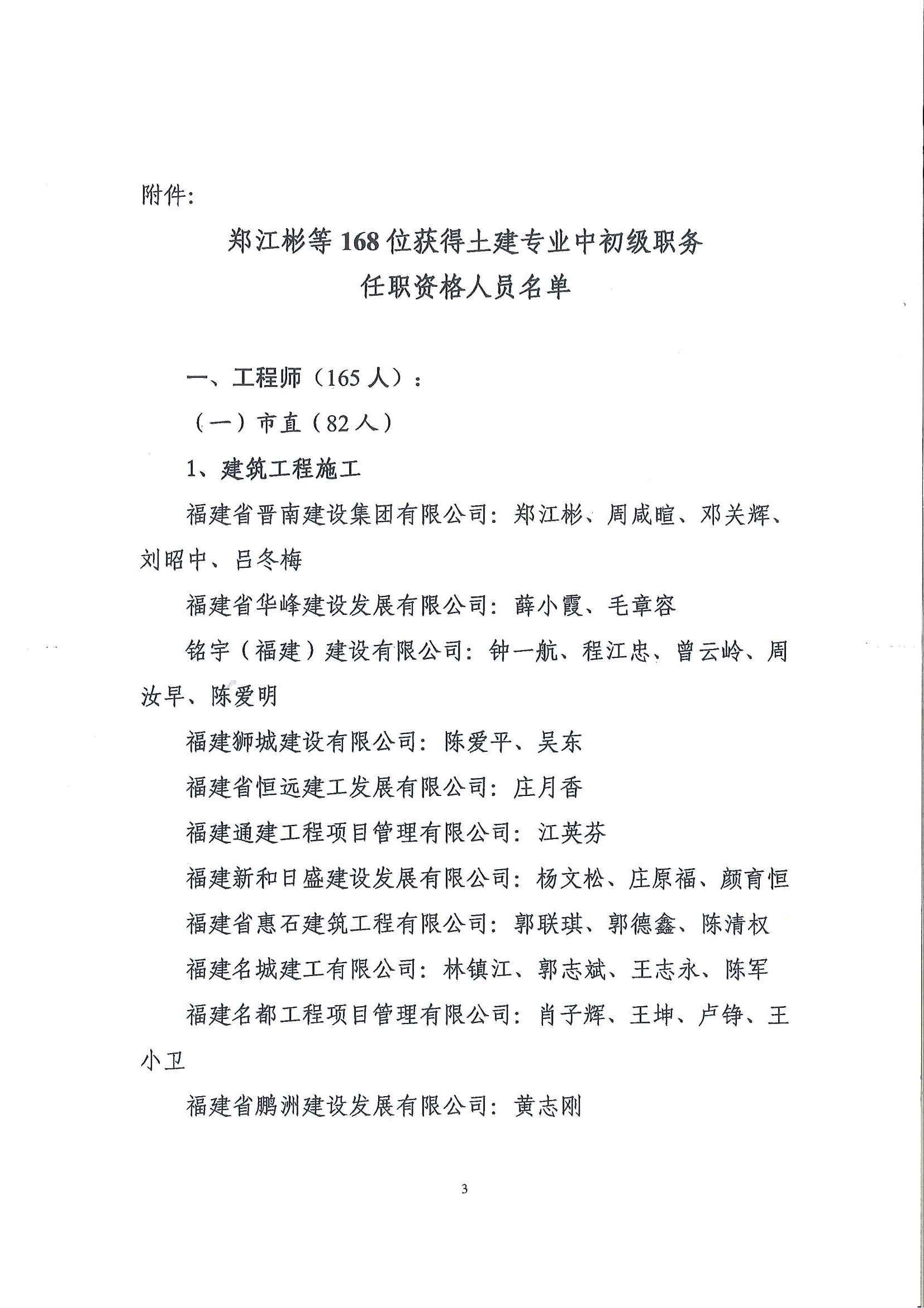 泉州市职称改革领导小组关于批准确认郑江彬等168位同志工程系列