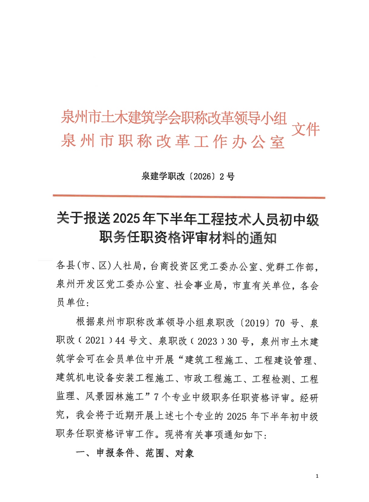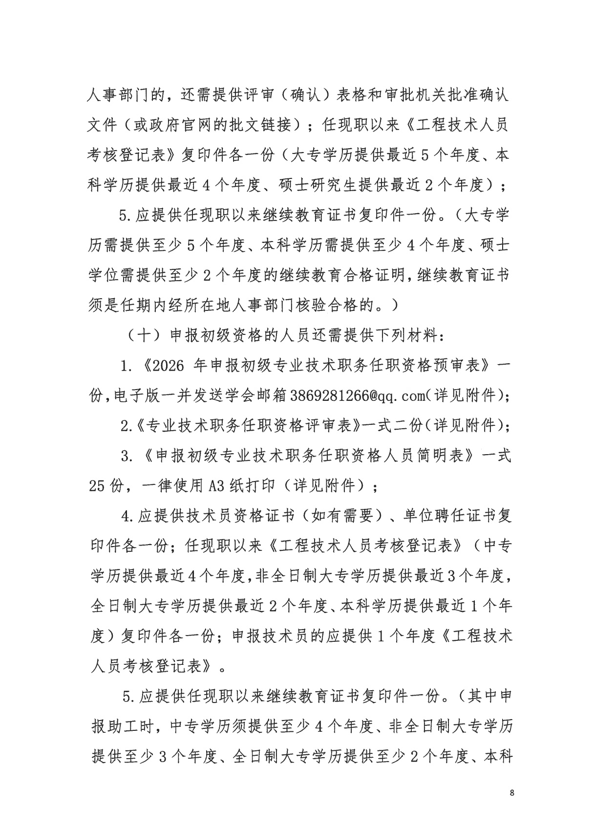 关于报送2025年下半年工程技术人员初中级职务任职资格评审材料的
